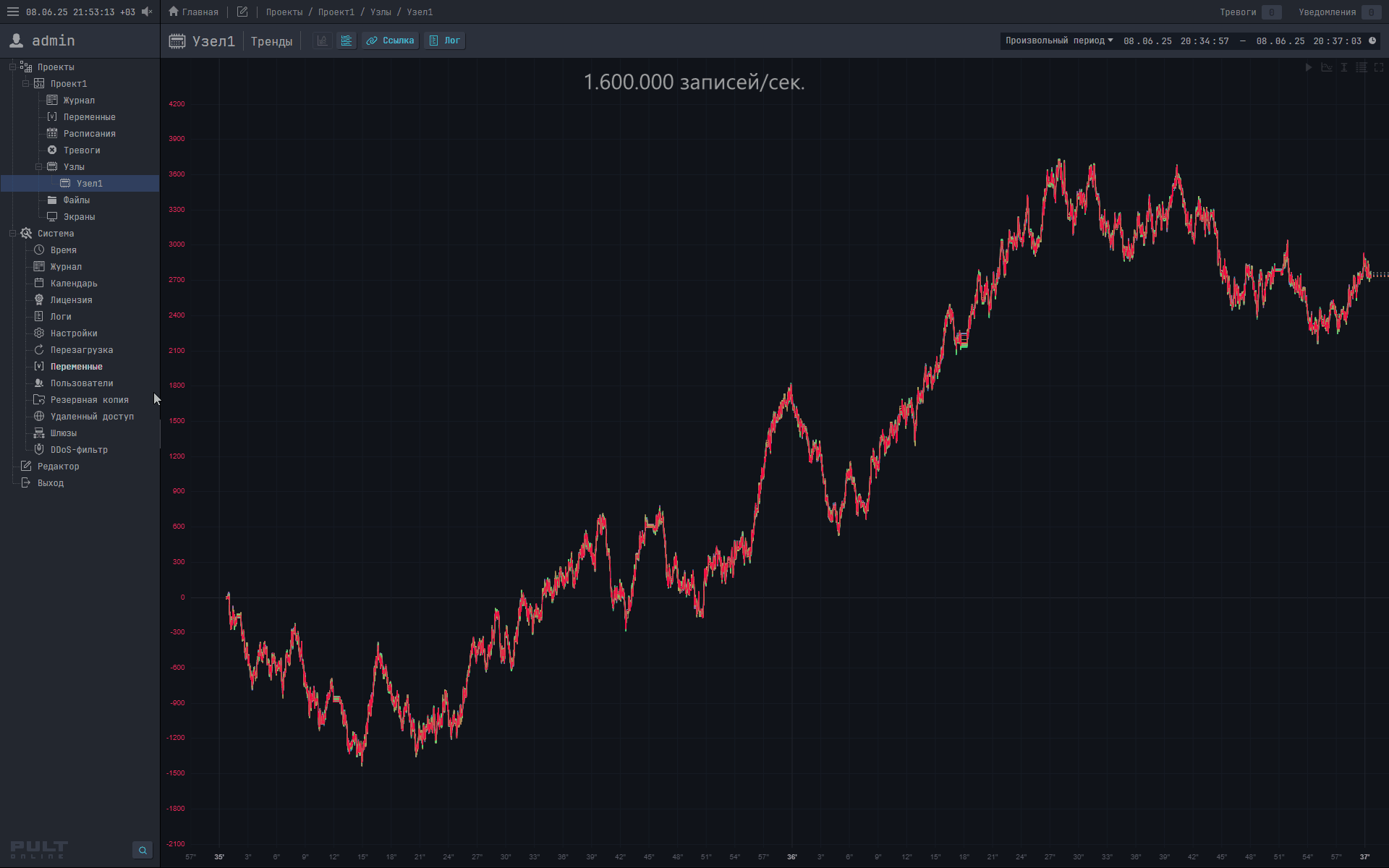 В обычном режиме тренды в SCADA Пульт.Онлайн хранят записи с миллисекундной точностью. Размер записи - 16 байт.