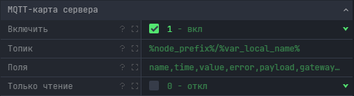 Пульт.Онлайн позволяет включить трансляцию значений и других полей переменных в MQTT-карту сервера.